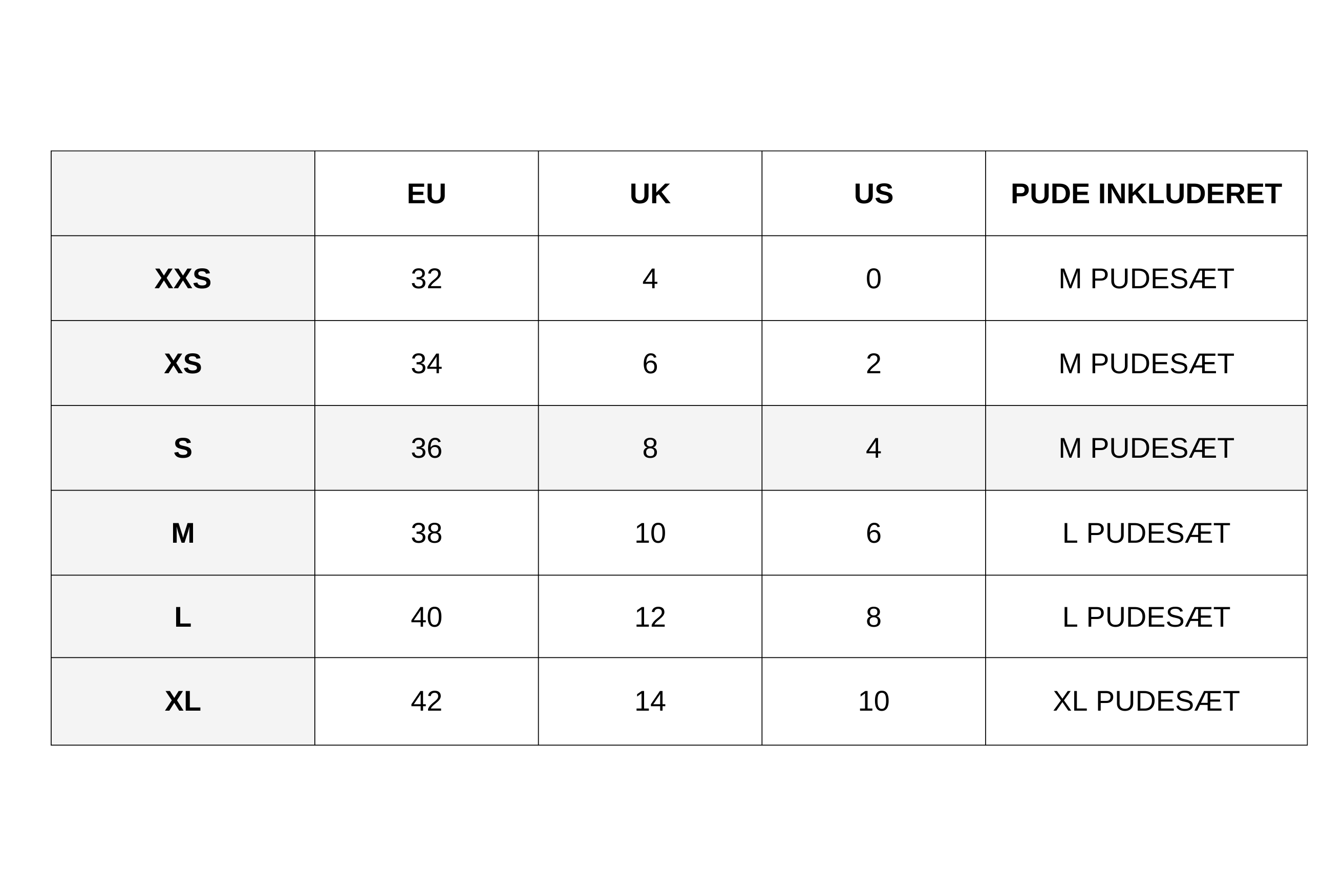 If you order a size XS, S, M and L, you must purchase an XL padding set. Order here