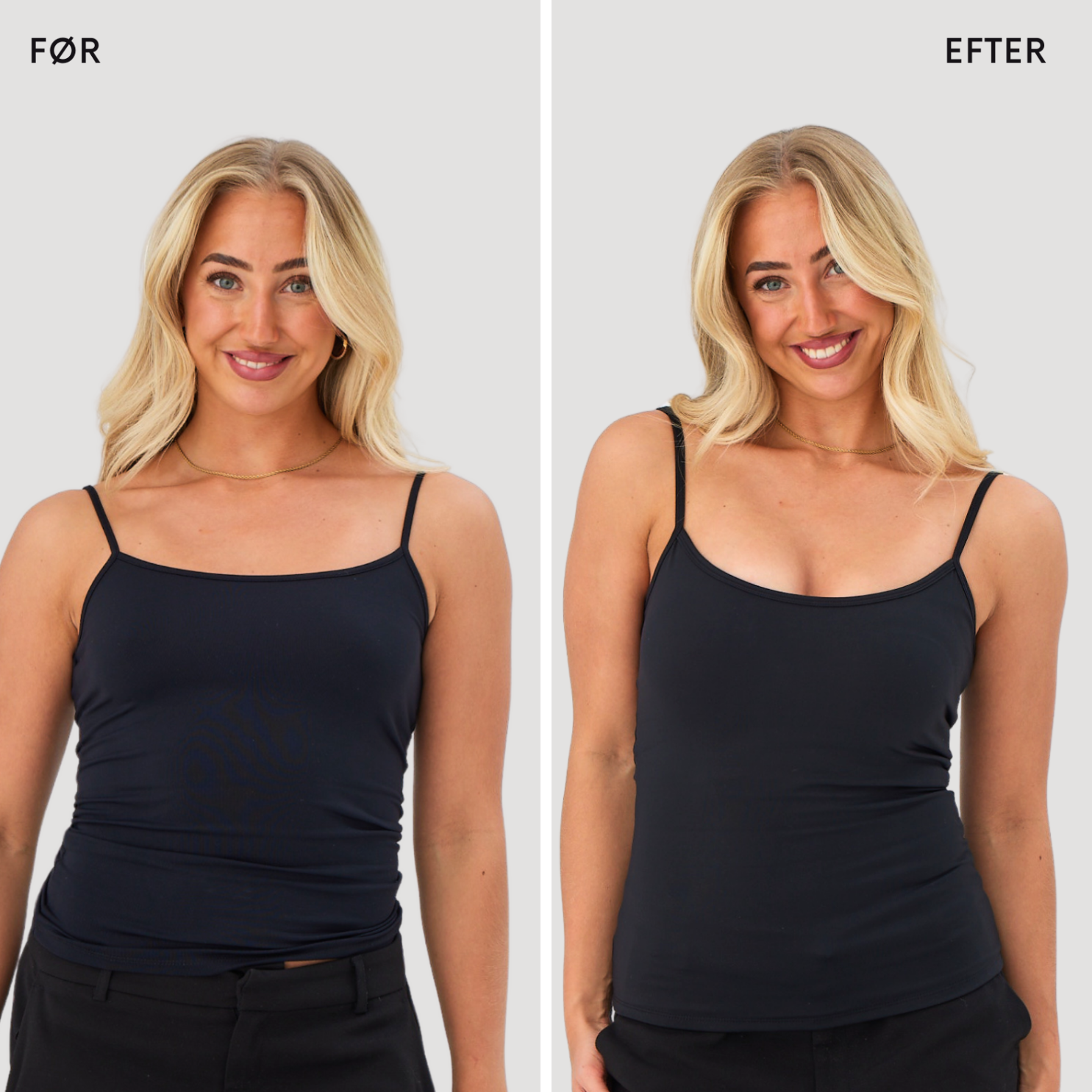 Meet our new tank top with thin, adjustable straps! As always, it features our signature built-in bra system. Designed with a single layer of fabric around the stomach, making it breathable and perfect for everyday wear.