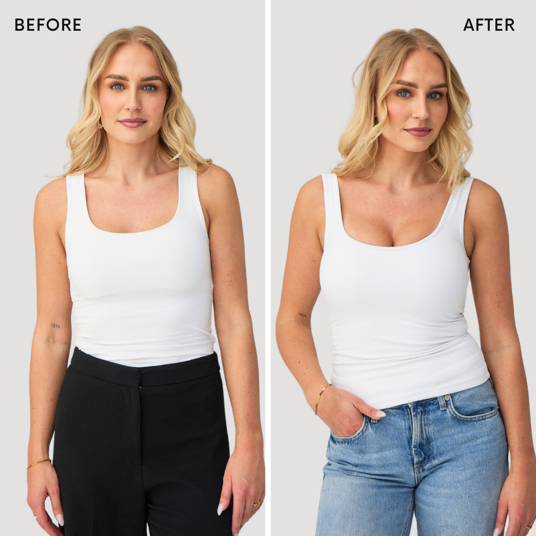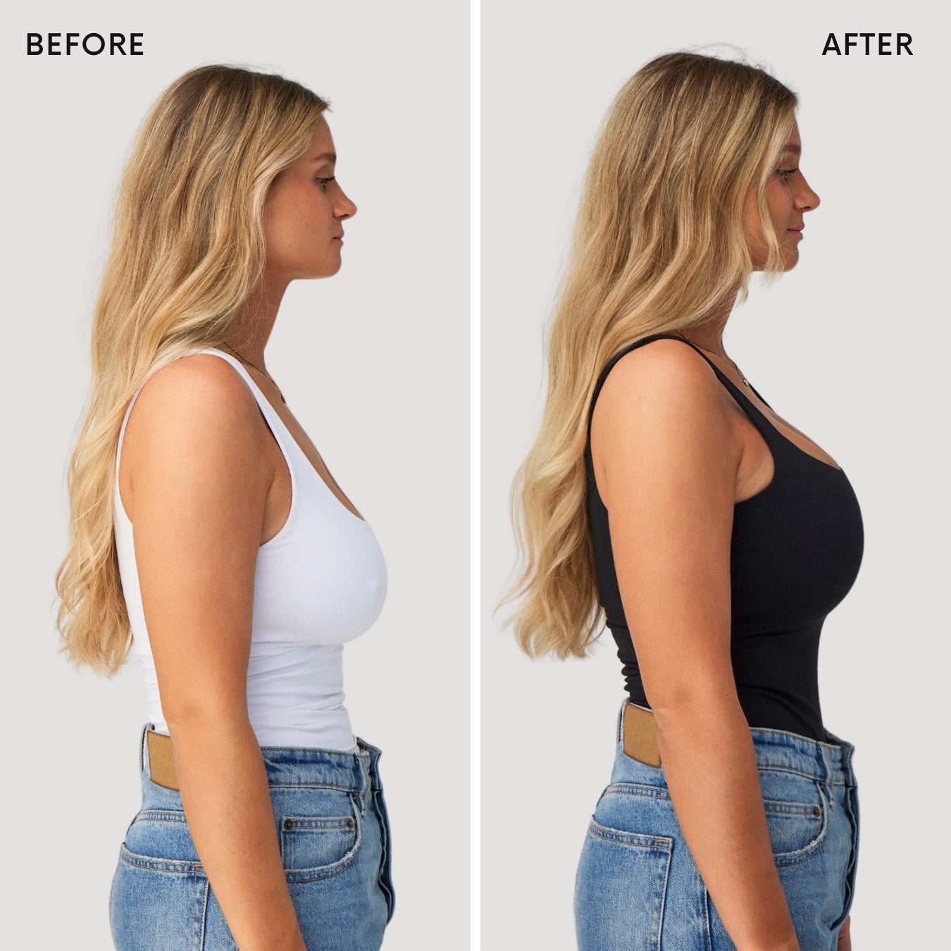 With our signature built-in bra system, you get high support, full coverage, and adjustable push-up WITHOUT a bra!