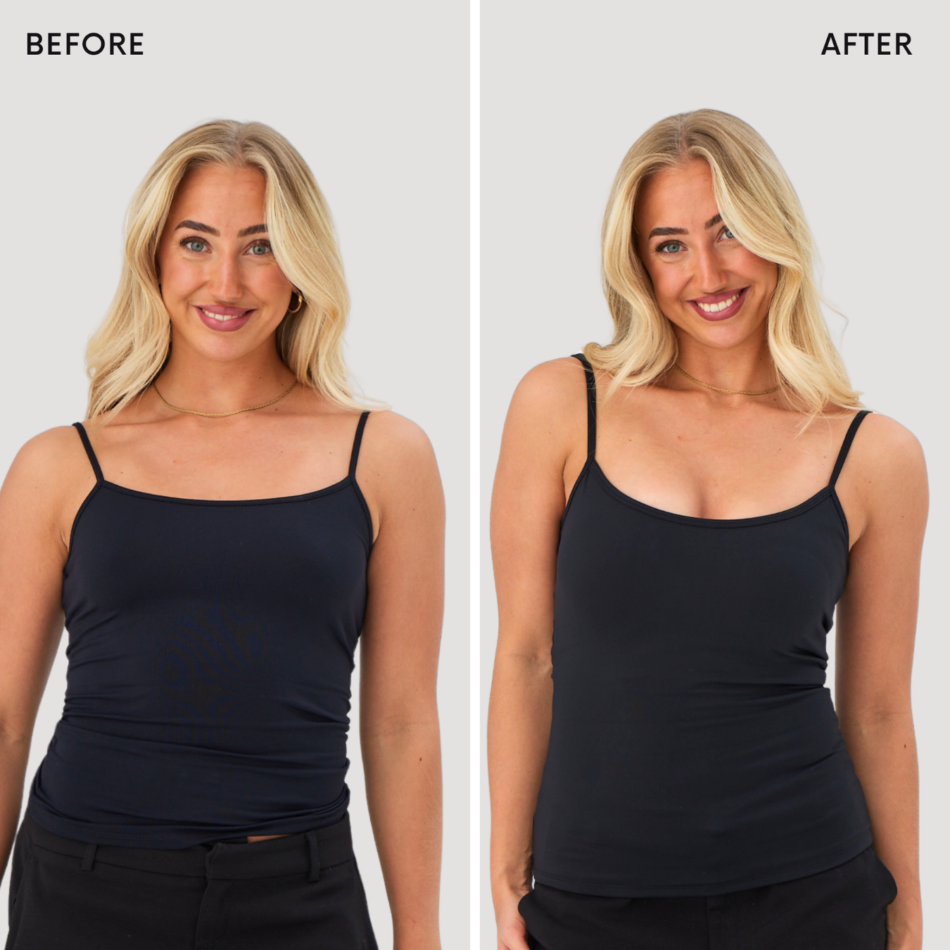 Our classic tank top is crafted with 3 layers of fabric for an extra snatched look. The perfect tank for dressing up or down, without any bra straps or marks on your back!