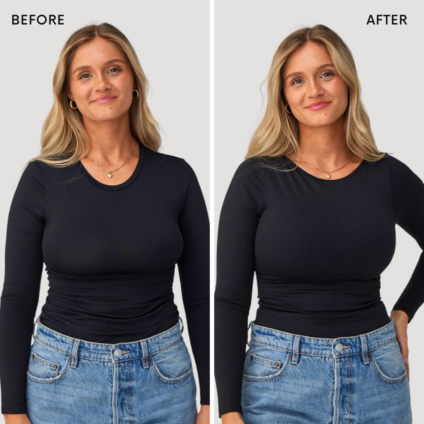 Our scoop-neck long sleeve is the perfect Bralief. A feminine design with an open back that ensures no visible bra straps.